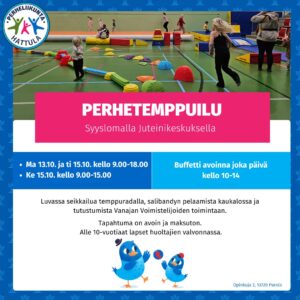 Tule mukaan liikkumaan ja virkistymään syyslomaviikolla Hämeenlinnassa. Ohjelmassa on maksuttomia ja avoimia liikuntatuokioita, sekä yleisöluisteluita eri puolilla kaupunkia – valitse omasi ja tule mukaan!
