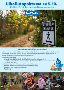 Hattulassa on ulkoilutapahtuma sunnuntaina 5.10. klo 10.00 – 14.00 Tenholan linnavuorella ja syylomaviikolla perhetemppuilua.